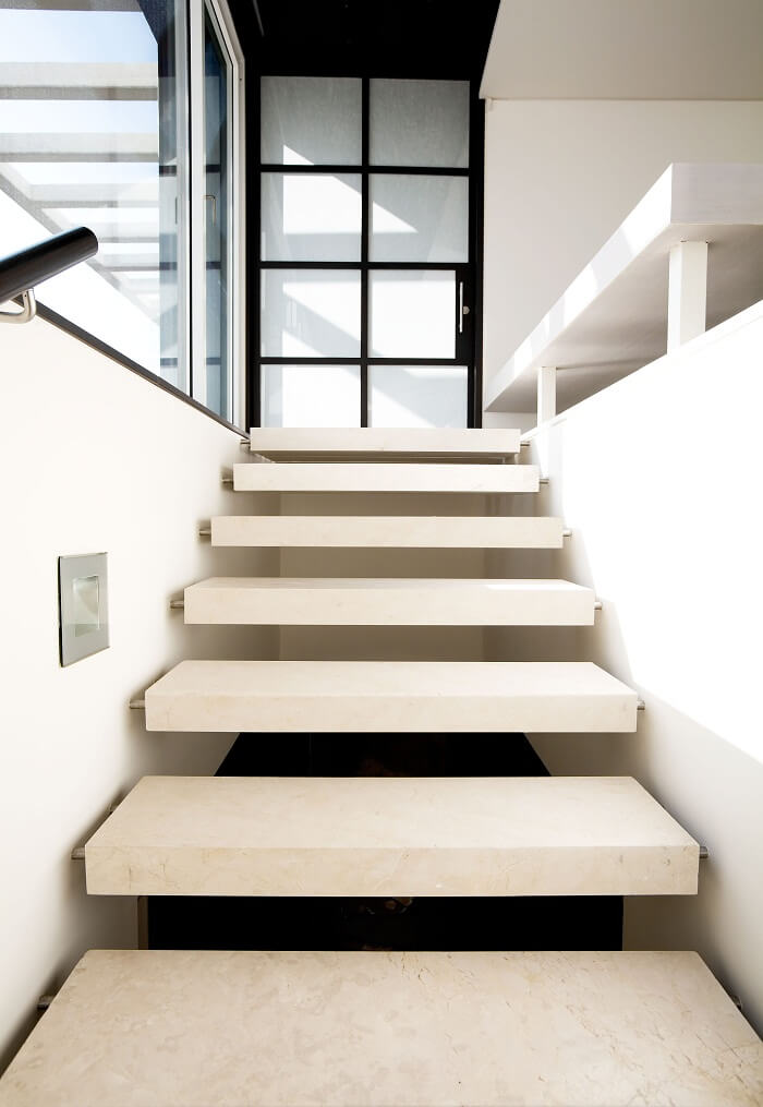 Đá marble màu kem rất thích hợp với những cầu thang có kích thước chật hẹp vì chúng mang lại cảm giác rộng rãi, thoáng đãng. Đặc biệt, một chút cách điệu ở phần cổ bậc (tạo khoảng trống) như cầu thang trong hình dưới đây sẽ làm tăng hiệu ứng thẩm mỹ một cách đáng kể:
