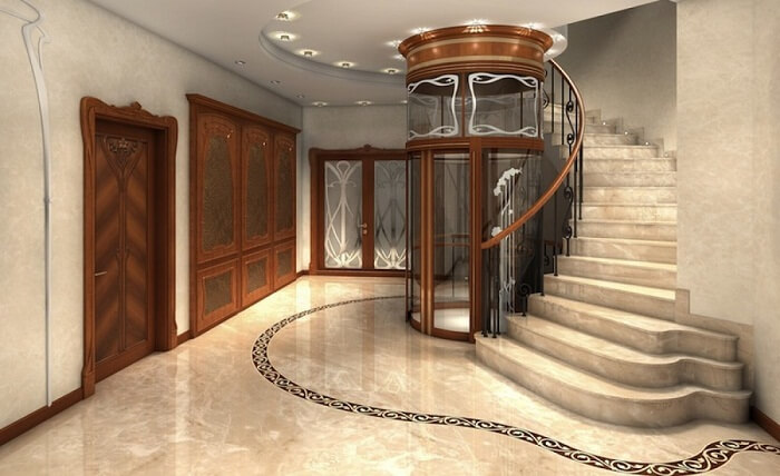 Vẻ đẹp nền nã, thanh lịch và tươi sáng của một cầu thang đá cẩm thạch màu kem sáng cùng mặt sàn tương đồng