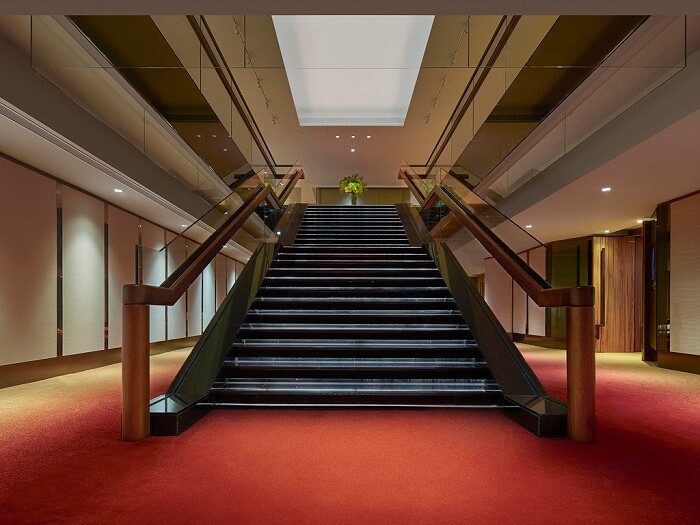 Đây là cầu thang phối giữa đá granite màu kem sáng ở mặt bậc và đá marble màu đen ở cổ bậc. Lựa chọn này không chỉ mang lại hình thức đẹp mắt mà còn góp phần khắc phục nhược điểm của đá marble bởi sự có mặt của đá granite ở mặt bậc sẽ giúp tăng cường khả năng chịu lực và chống mài mòn cho cầu thang bộ