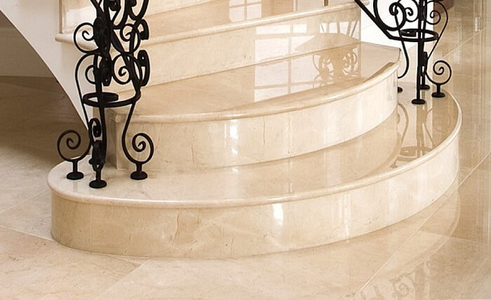 – Tính thẩm mỹ cao: trong các loại đá tự nhiên hiện nay được dùng để ốp cầu thang, có thể nói đá marble là vật liệu có hình thức đẹp mắt nhất. Sản phẩm này không chỉ có đường vân độc đáo, lớp nền tươi sáng mà độ bóng bề mặt của chúng cũng vô cùng ấn tượng. Không chỉ có vậy, sự đa dạng về chúng loại và màu sắc, từ trắng xám, trắng vân mây, đến kem, vàng kem, hồng kem, nâu cà phê, đen,…đã khiến cho khách hàng có nhiều cơ hội lựa chọn được dòng sản phẩm phù hợp với phong cách trang trí và sở thích cá nhân.