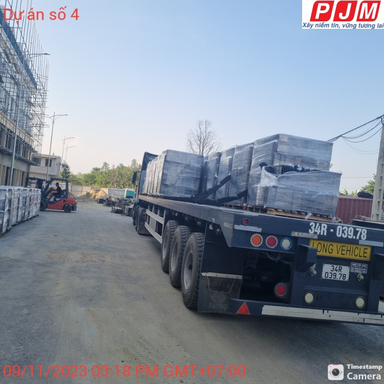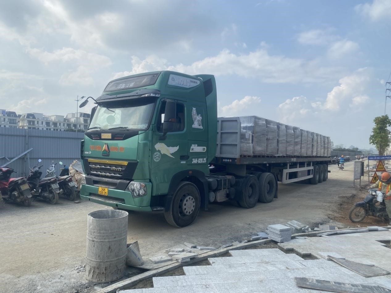 Xe chuyên chở gạch từ cảng về dự án