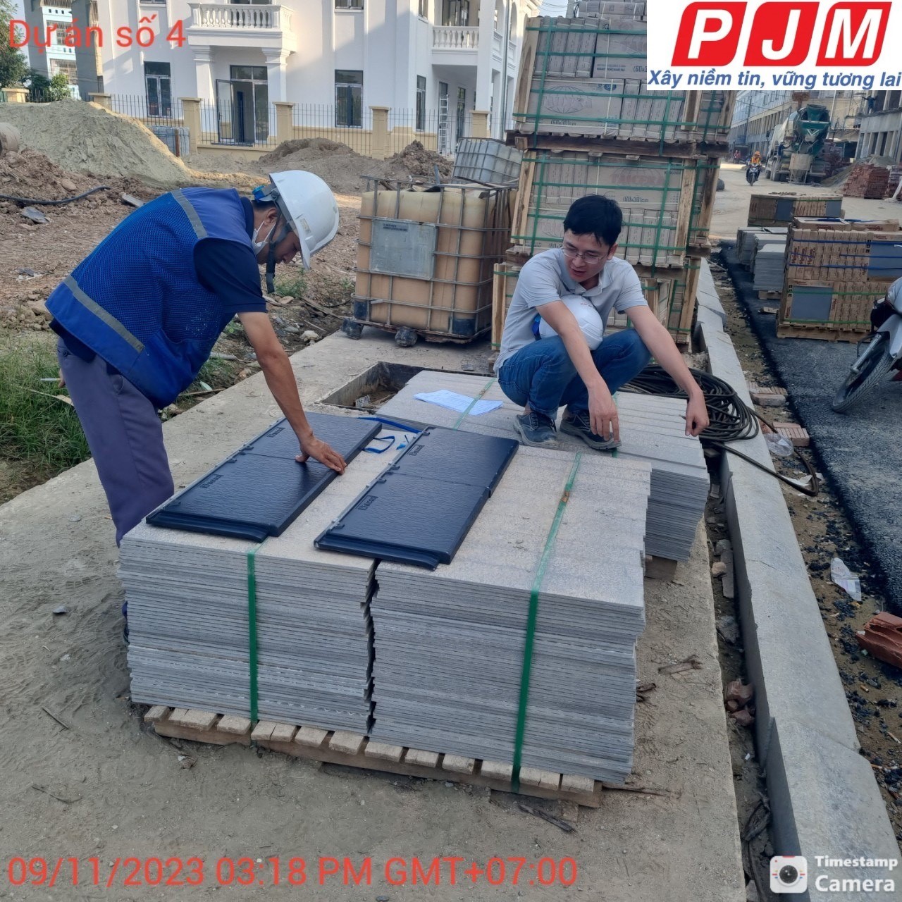 Công tác hạ những kiện ngói phẳng lợp mái Inari nhanh chóng của đội ngũ vật tư